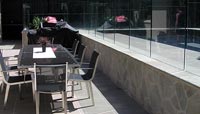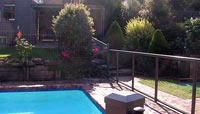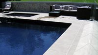 The pool itself was stripped and re-tiled - and we added a spa large enough to accommodate the whole family (plus a few friends). By adding water channels from the spa into the pool, we were able to link the two, creating the impression that both were built together. By using frameless glass pool fencing, the whole garden is visible, making it appear even larger than it is - and the owners have a clear view to every corner of the garden to keep an eye on the kids.